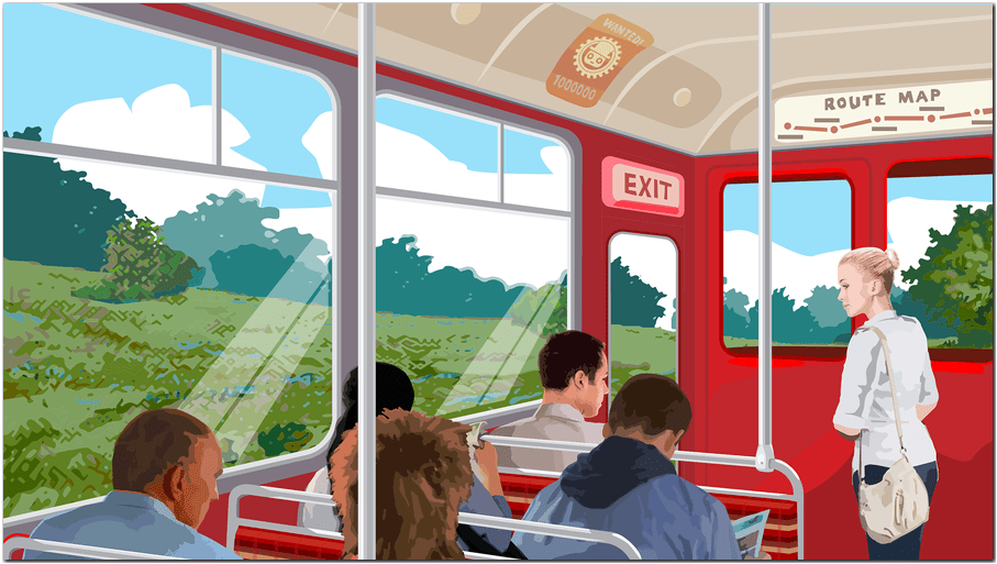 The impressionistic style failed to work, turning the piece from people "on the bus" to "zombies" on the bus :-(